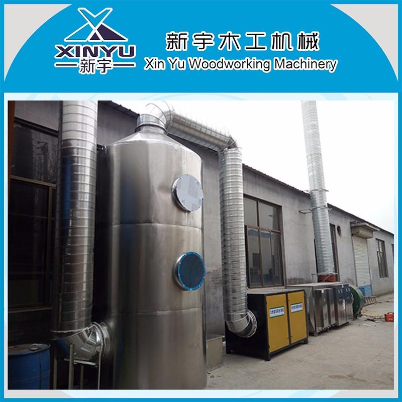 工作原理:带有粉尘,有害废气、烟雾的气体从吸尘吸气管道进入旋风填料喷啉塔,经过不锈钢旋风板两次改变风向使气体在塔内来回旋转,通过两种不同的填料层,再经过两次的喷淋,使粉尘和有害气体,及烟雾的有效的分解稀释,再通过除雾层除去喷淋所带来的水雾,利用风机从排风管道排除,根据有害气体和烟雾的浓度:加上等离子光氧等电子设备配套使用,这样处理效果会更佳。